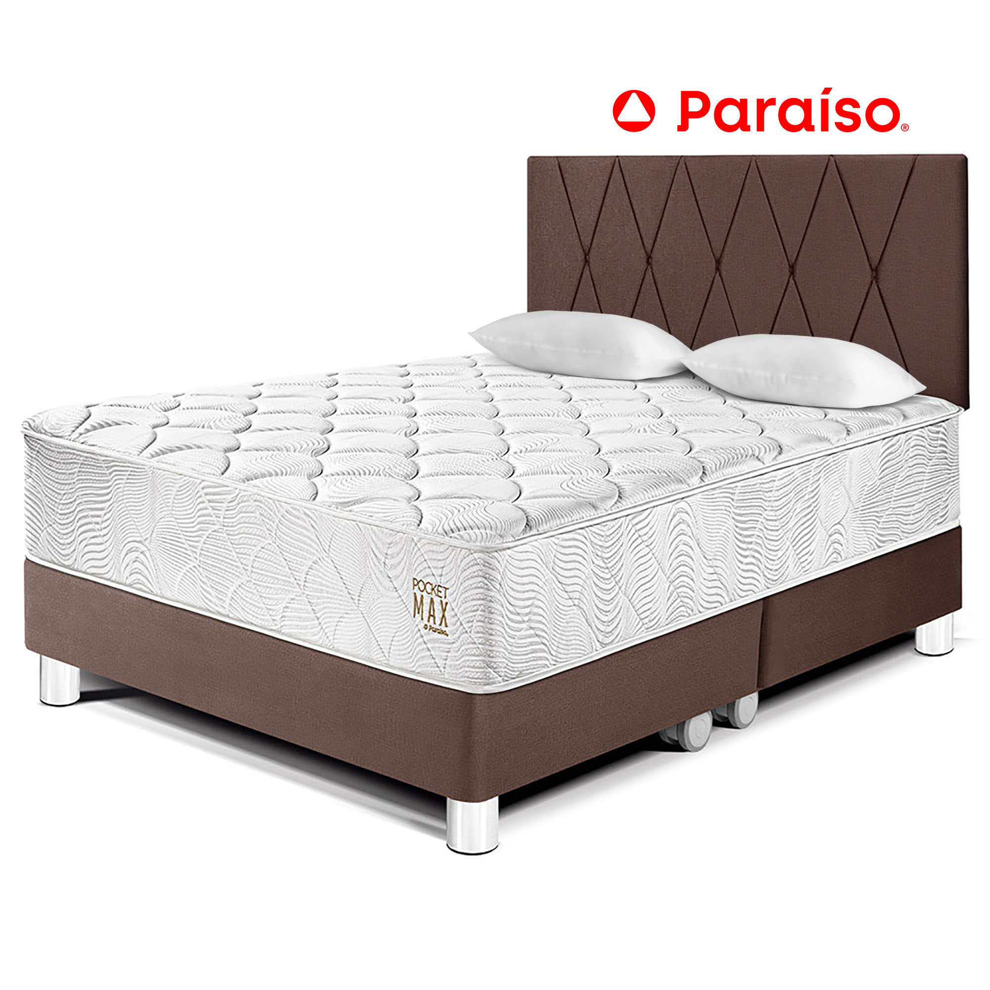 Dormitorio PARAISO Pocket Max Chocolate King + 2 Almohadas + ProtectorS/2,329