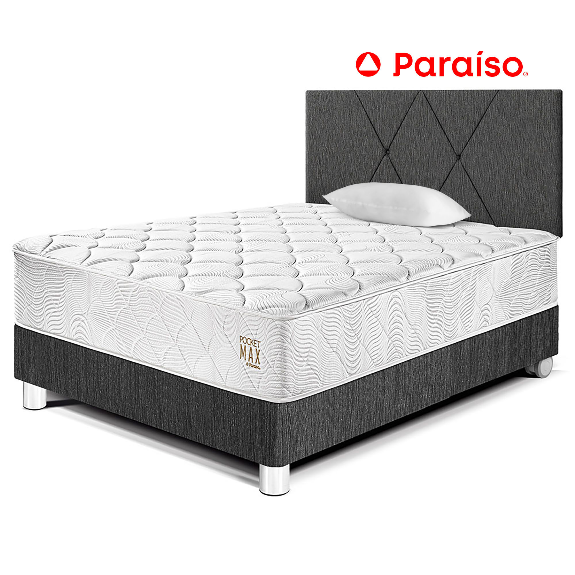 Dormitorio PARAISO Pocket Max Charcoal 1.5 Plazas + 1 Almohada + ProtectorS/1,229