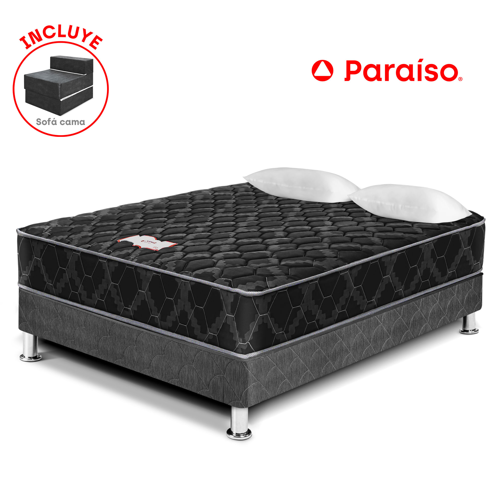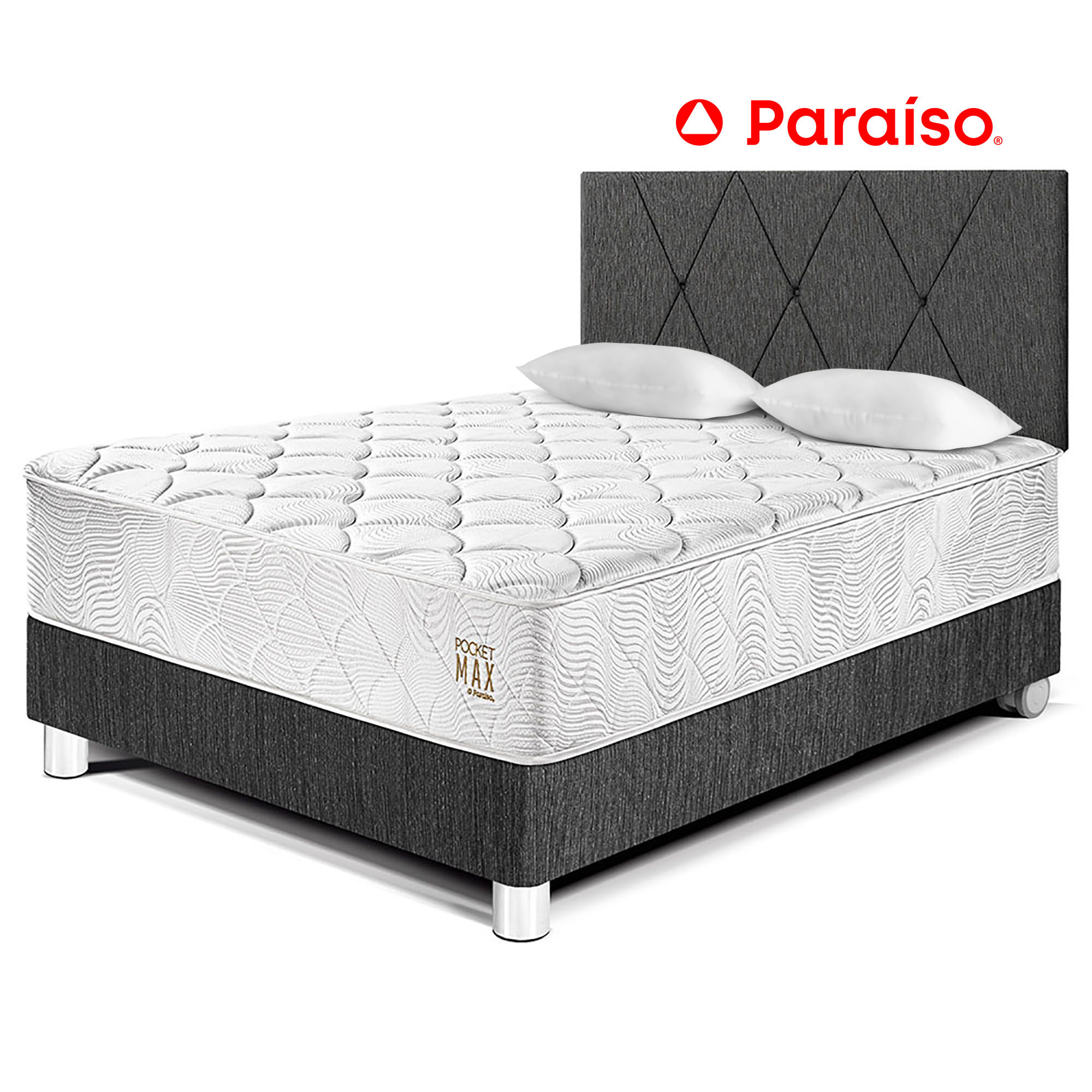 Dormitorio PARAISO Pocket Max Charcoal 2 Plazas + 2 Almohadas + ProtectorS/1,469