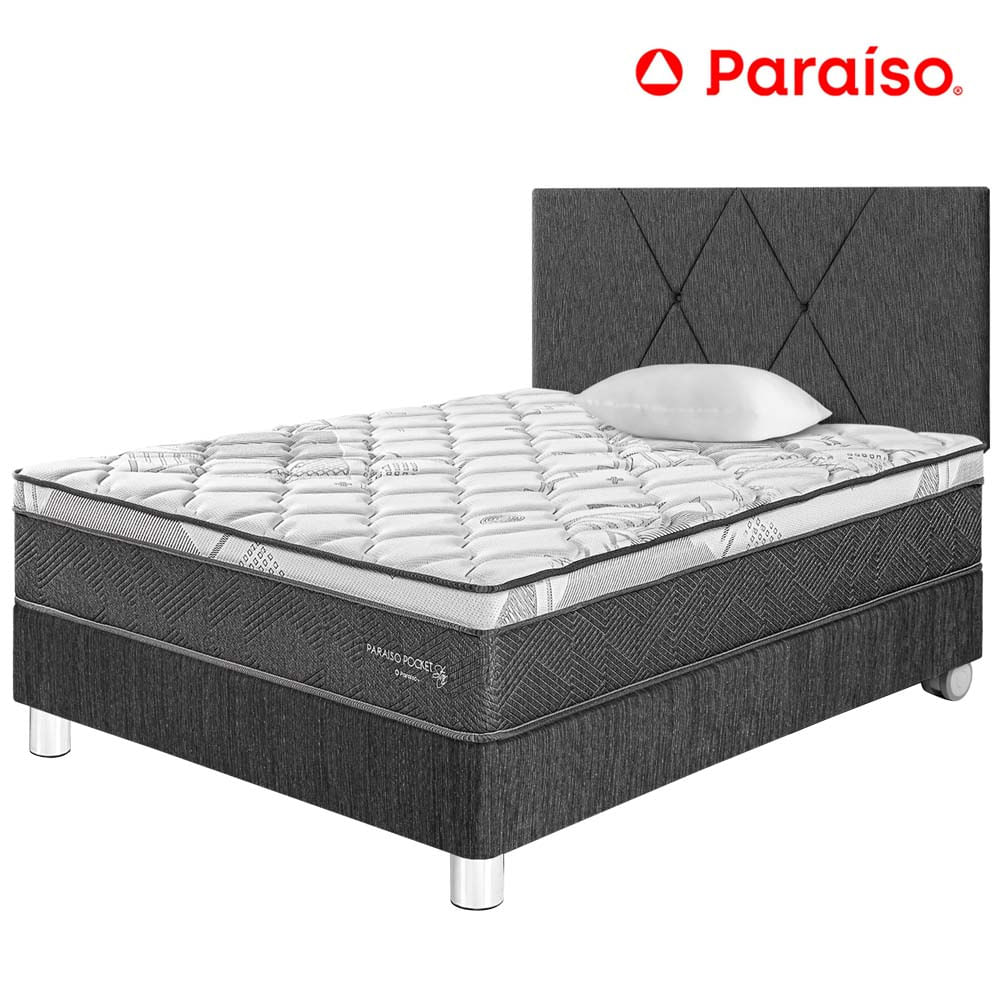 Dormitorio PARAISO Pocket Star 1.5 Plazas + Cabecera Loft Charcoal + 1 Almohada + 1 ProtectorS/1,419