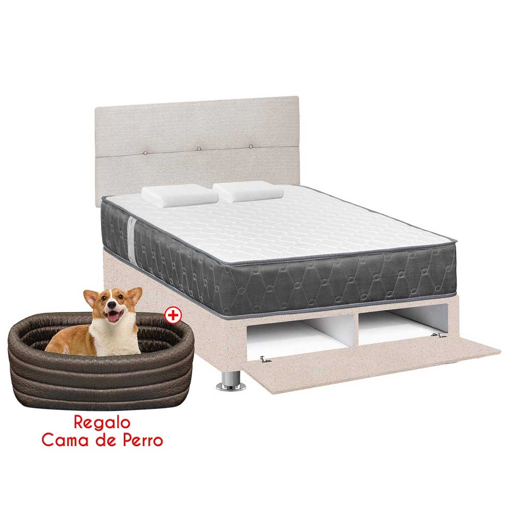 Dormitorio Sabanera FORLI Acqua 2 Plazas Beige + 2 almohadas + Cama mascotaS/889