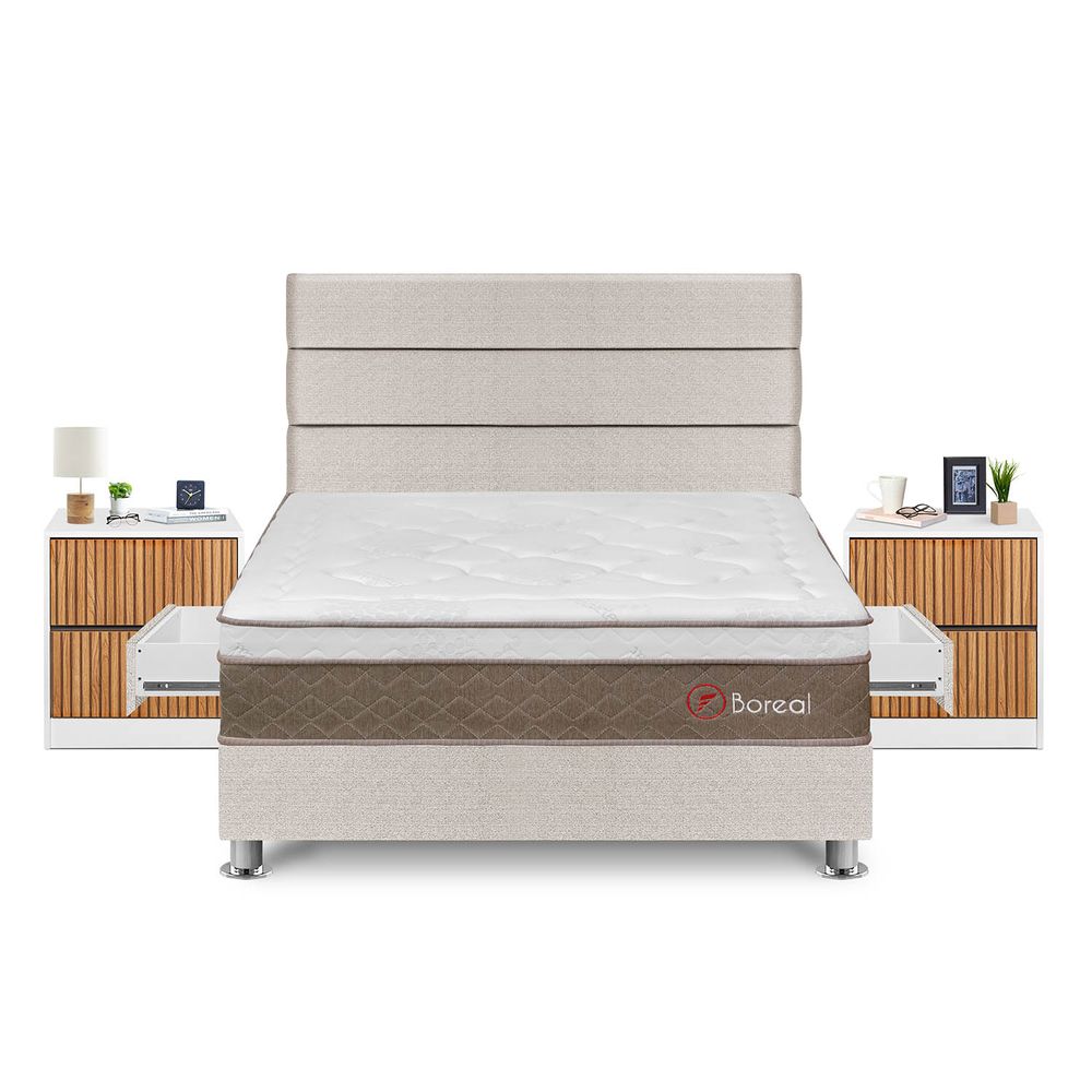 Dormitorio Capella Queen + Velador Repisa Colors + Protector + AlmohadaS/3,498