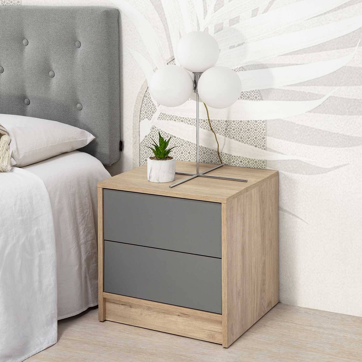 Velador Moderno Antuanett 2 Cajones Gris