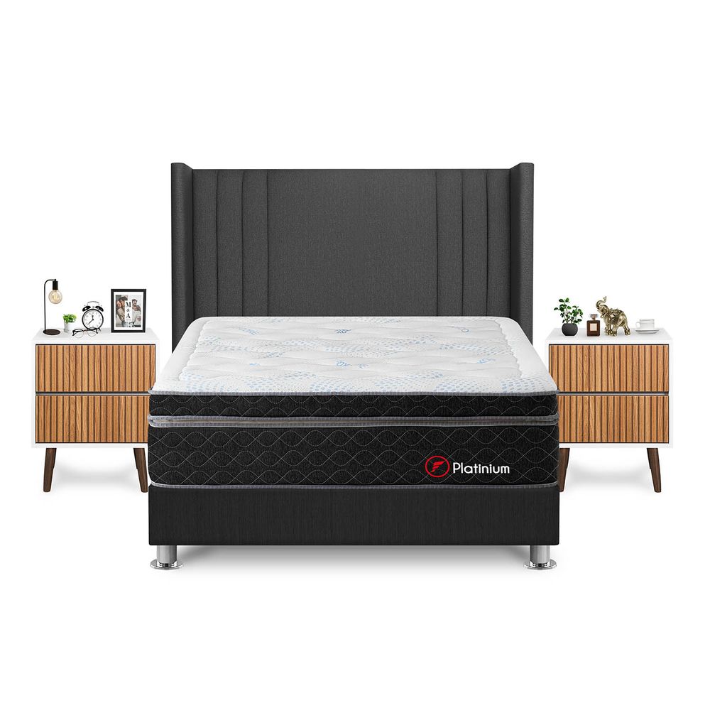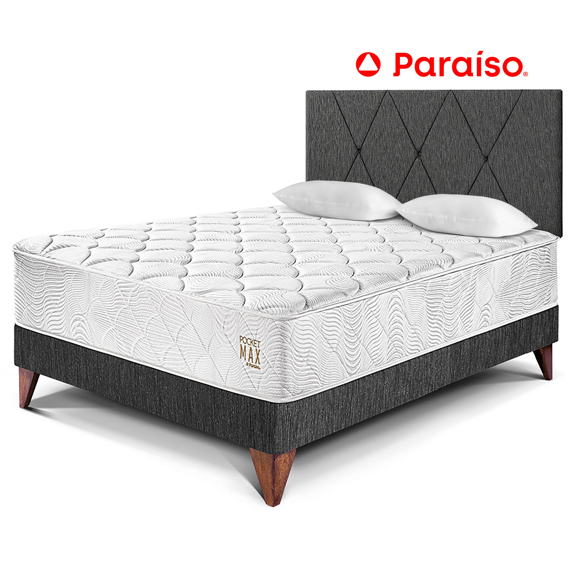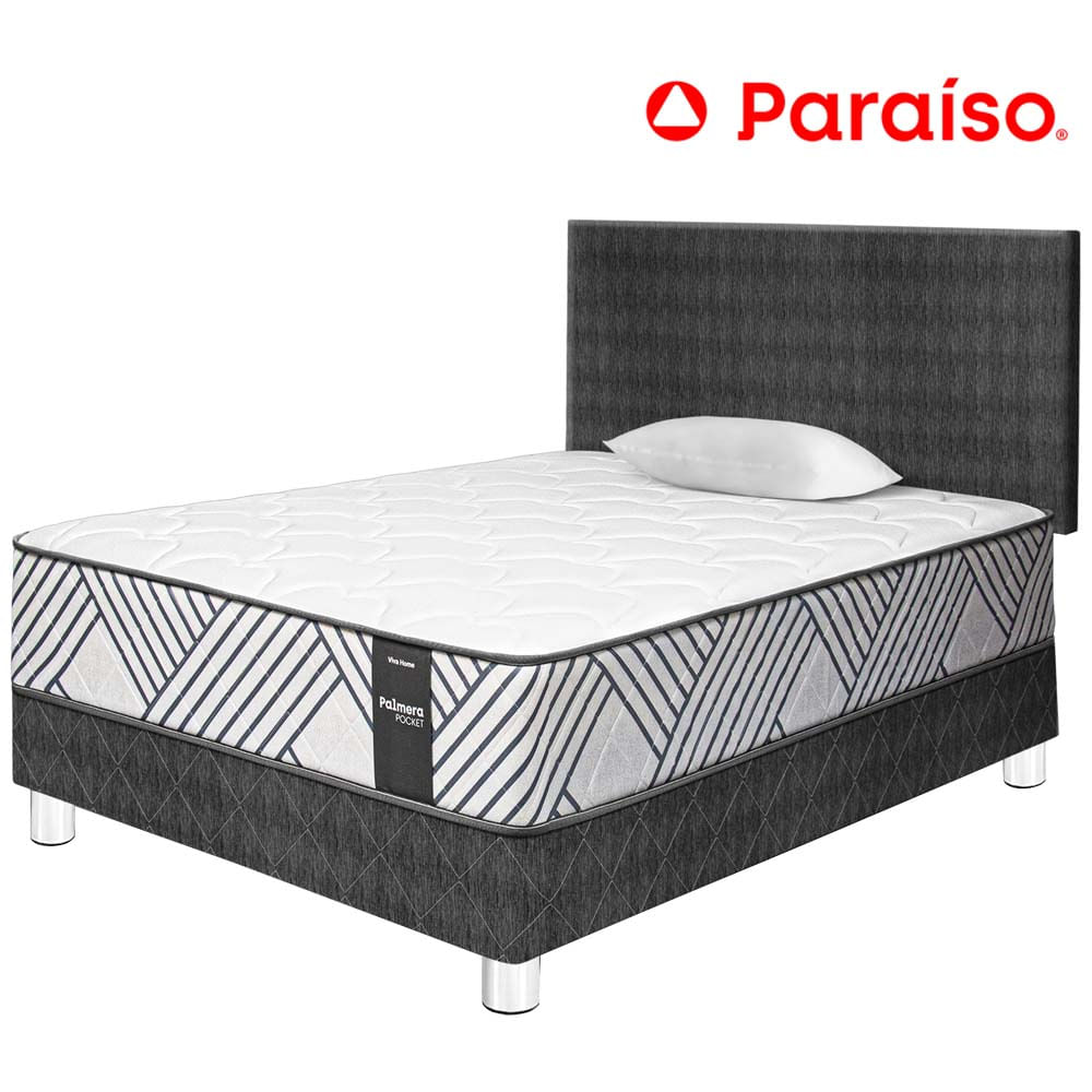 Dormitorio Europeo PARAISO Pocket Max Charcoal 2 Plazas + 2 Almohadas + ProtectorS/1,499