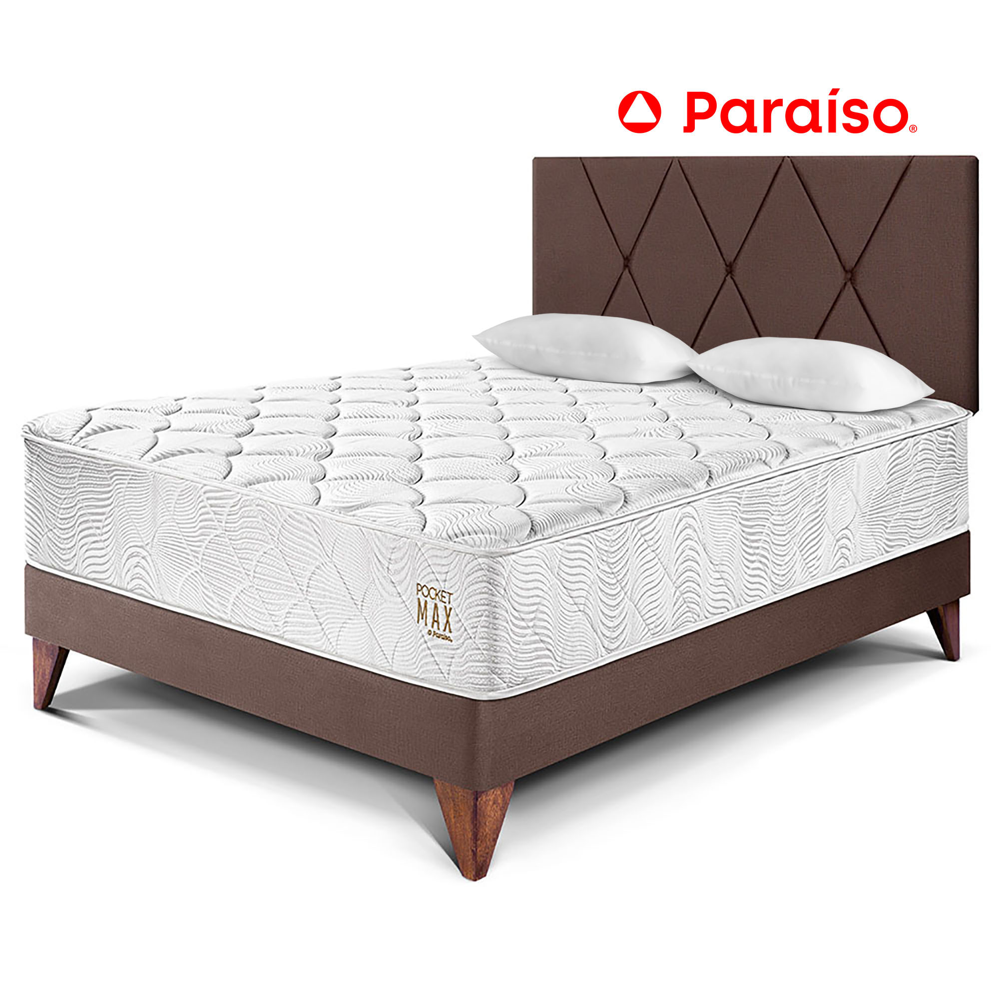 Dormitorio Europeo PARAISO Pocket Max Chocolate 2 Plazas + 2 Almohadas + ProtectorS/1,499