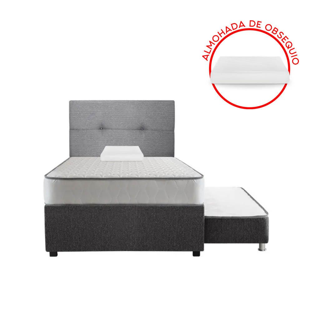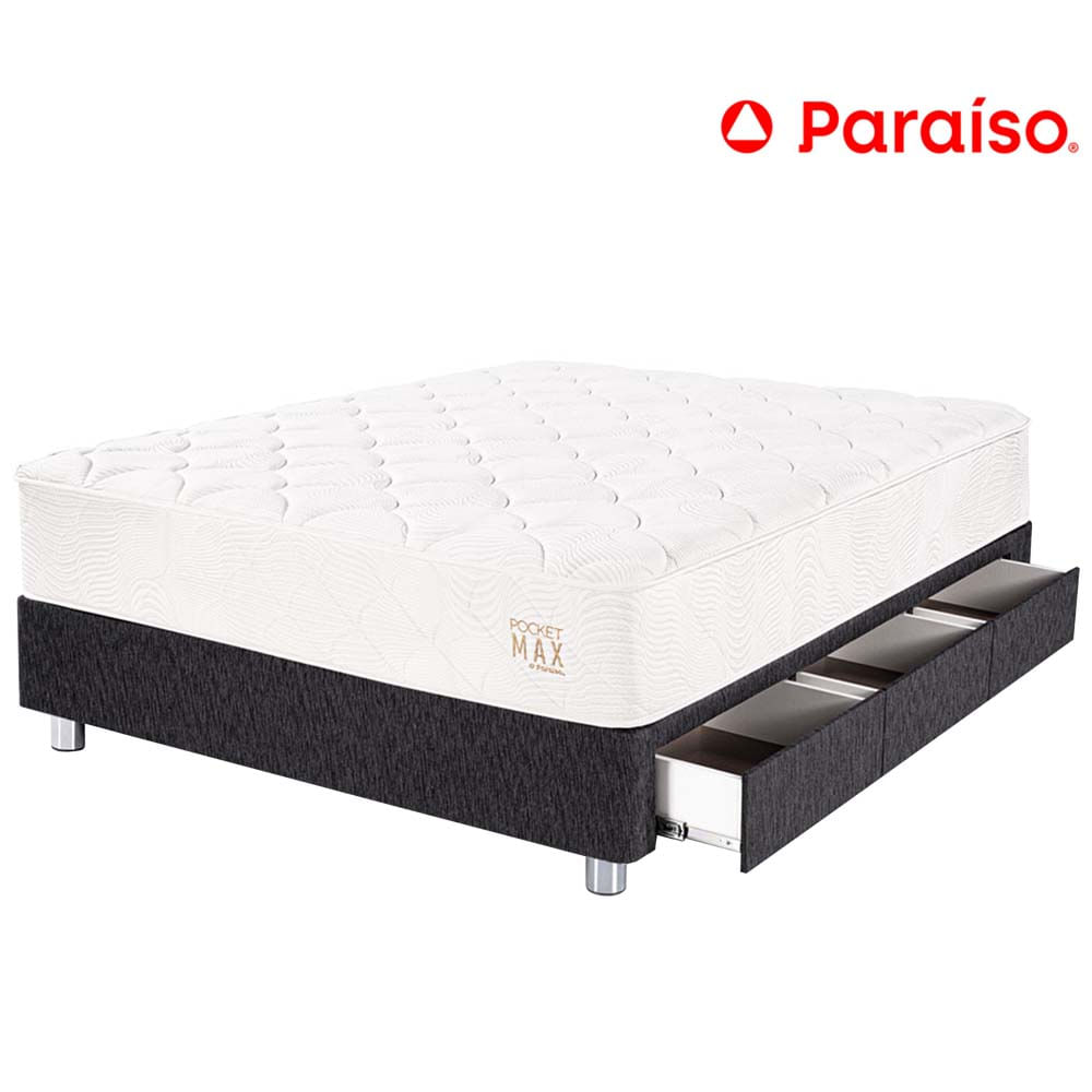 Cama Box Tarima 3 Cajones PARAISO Pocket Max Charcoal 1.5 Plazas + 1 Almohada + ProtectorS/1,339