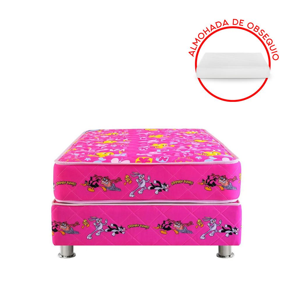 Cama Americana Forli Looney Tunes Rosa 1.5 Plazas + 1 Almohada + 1 ProtectorS/869