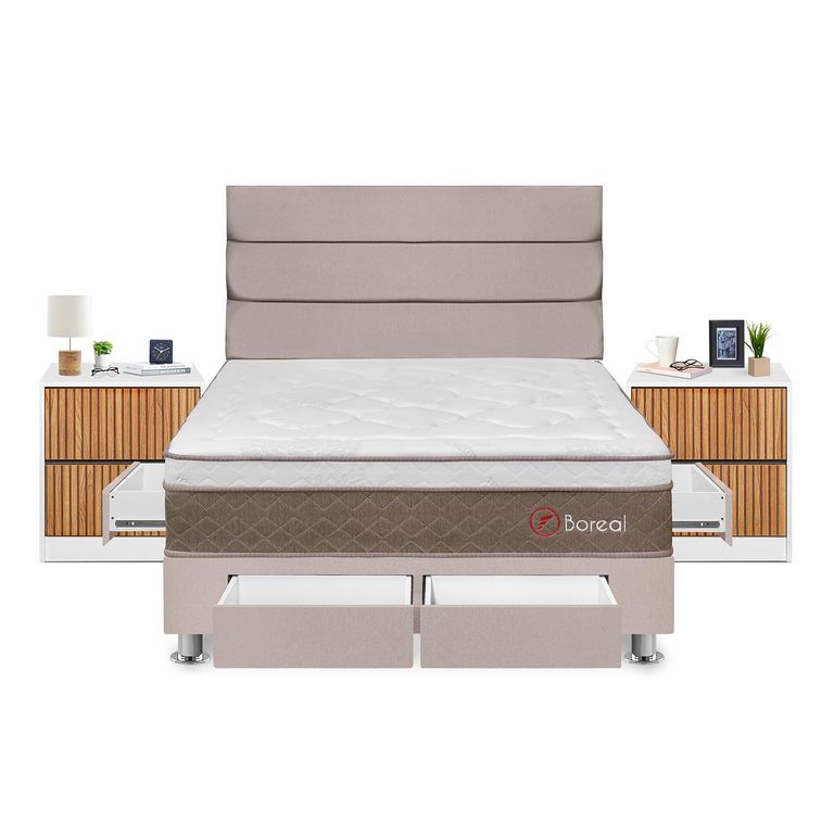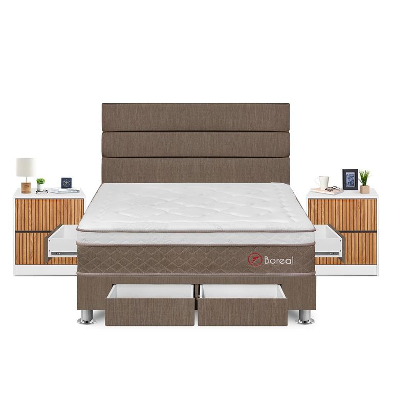 Dormitorio Boxet Luce Pocket Queen Marrón + 2 Almohadas + Protector Forli FORLIS/2,749