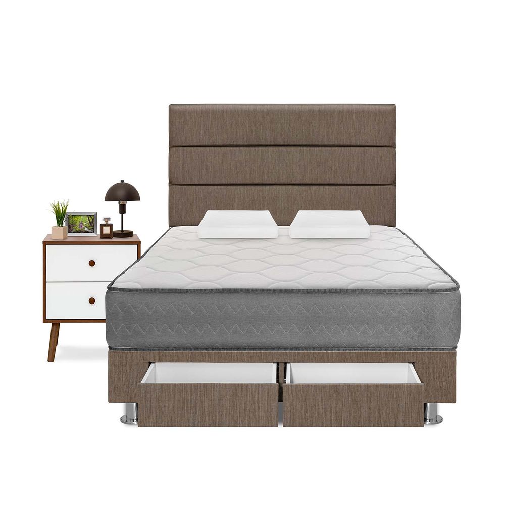 Dormitorio Boreal Con 4 Cajones 2 Plazas + Velador Roma + Respaldo MarronS/1,949