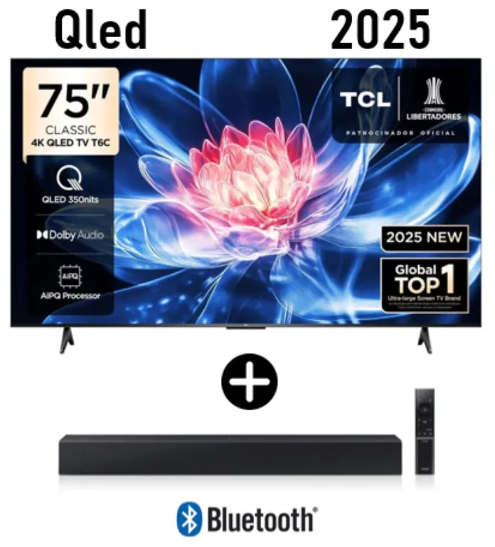 Televisor TCL QLED 75'' UHD 4K Smart TV 75T6C Modelo 2025 + Soundbar C-400 TCLS/2,499