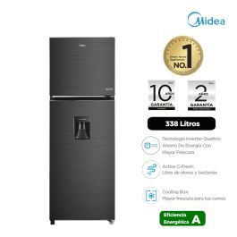 MDRT489MTR28PEWD - Refrigeradora 338L 2 Puertas C/Dispensador Inox Negra MideaS/1,299
