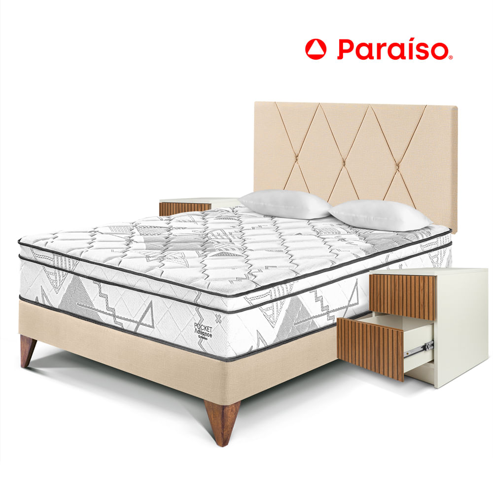 Dormitorio Europeo Pocket Advance 2 Plazas + 2 veladores Brisse ChampagneS/1,749
