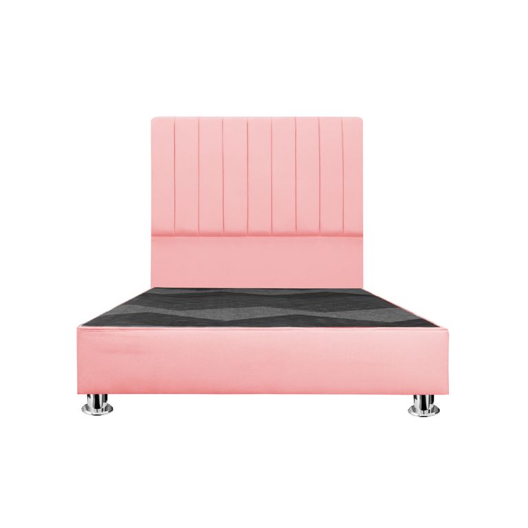 Cama tapizada Perla King 2 tarimas Color Rosado MUEBLES MACRUMOS/949