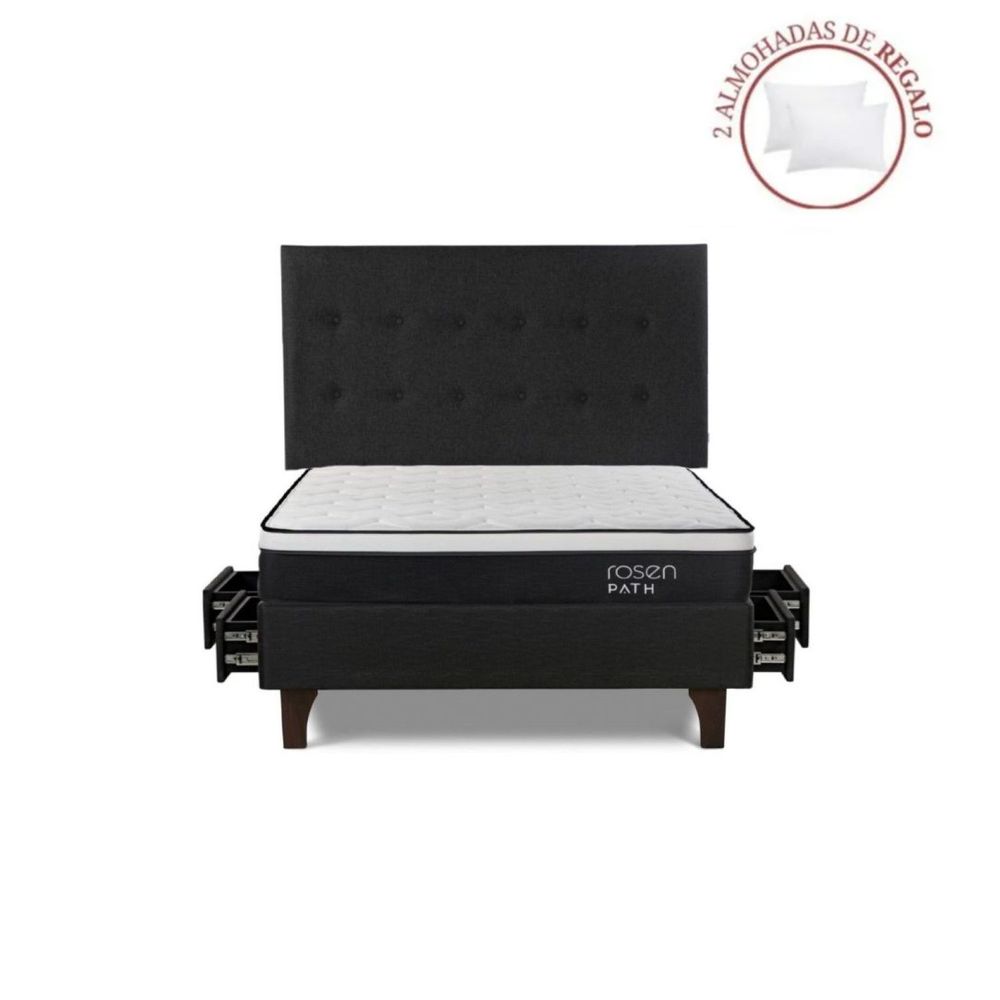 Dormitorio Con Cajones Path Grafito 2 Plazas West Grafito + 2 AlmohadasS/2,099