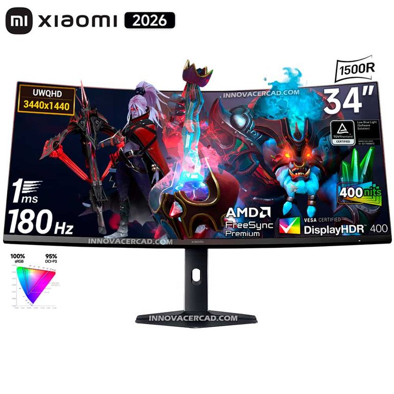 Monitor Xiaomi Gaming Curvo G34WQi , 34 UWQHD 3440x10440, 180HZ, 1MS, HDR400 XIAOMIS/1,279