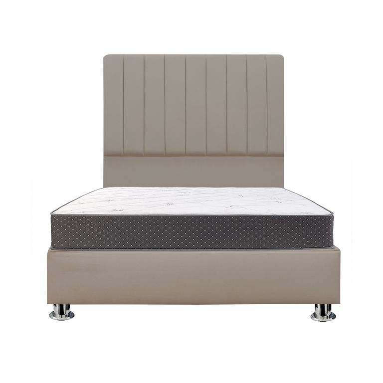 Combo Cama tapizada Serena - 2 Plz Beige oscuro+Colchón Semiortopédico MUEBLES MACRUMOS/689