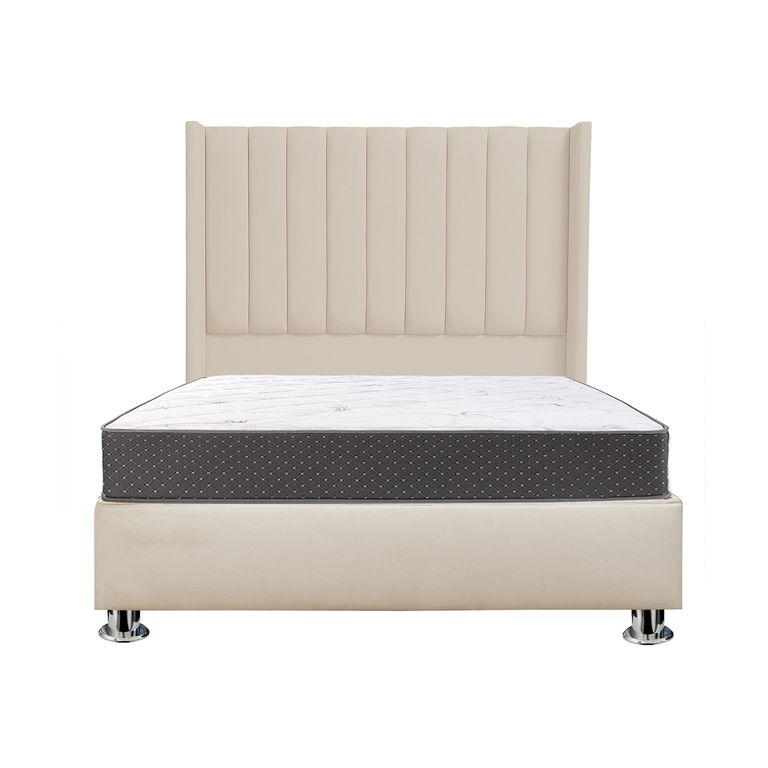 Combo Cama tapizada Barcelona-Queen Beige claro+Colchón Semiortopédico MUEBLES MACRUMOS/1,109