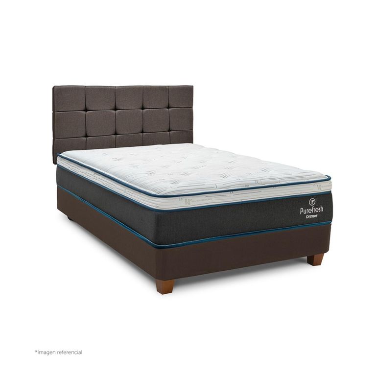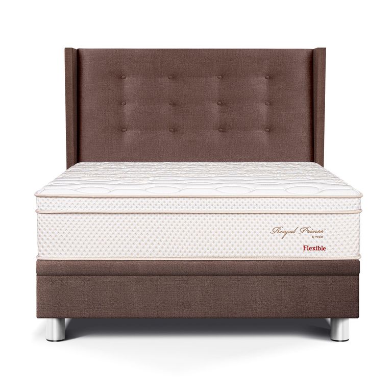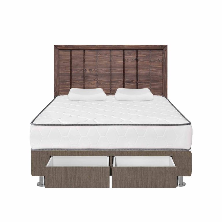 Combo Cama tapizada Varsovia 15P+Colchon Majestic Paraíso+Almohada - Beige oscuro MUEBLES MACRUMOS/809