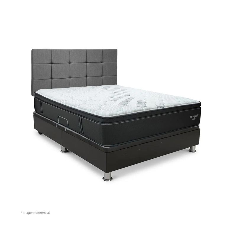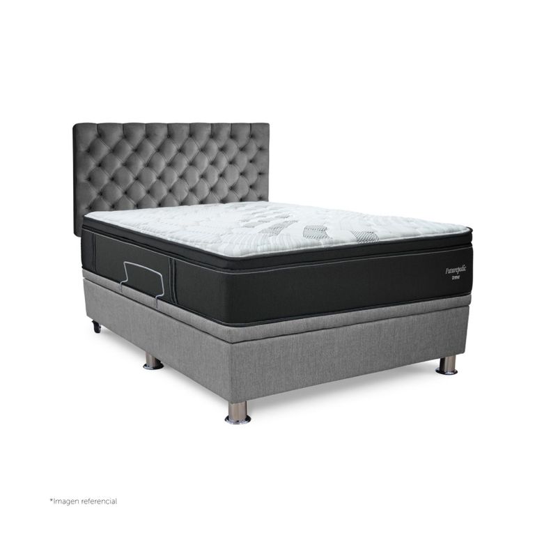 Combo Cama tapizada Varsovia Gris oscuro Queen + Colchon + Almohada MUEBLES MACRUMOS/1,049