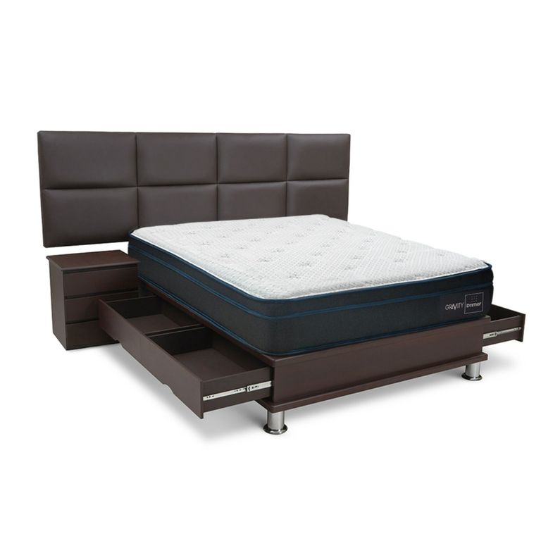 Dormitorio Con Cajones Royal Abrazzo Novo 1.5 Plz Chocolate + 1 Almohada Viscoelástica PARAISOS/2,249
