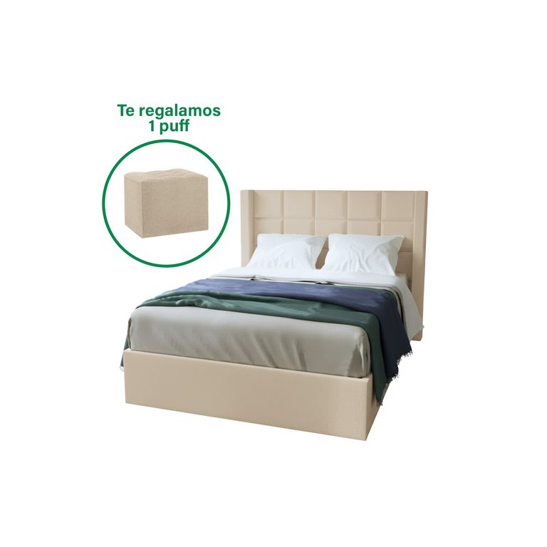 Cama tapizada Ema con franja decorativa - Queen 2 piezas - Beige claro MUEBLES MACRUMOS/2,169