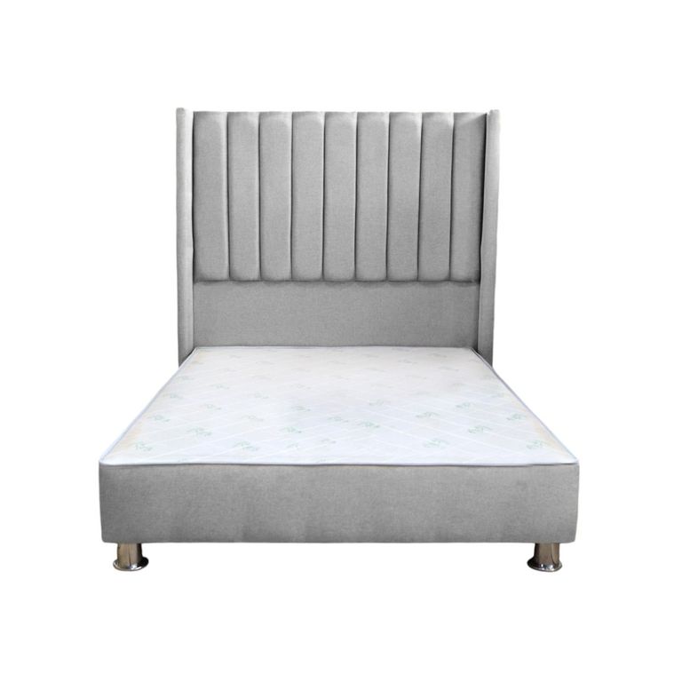 Cama tapizada Barcelona Brazo Recto - Queen - color gris plata MUEBLES MACRUMOS/609