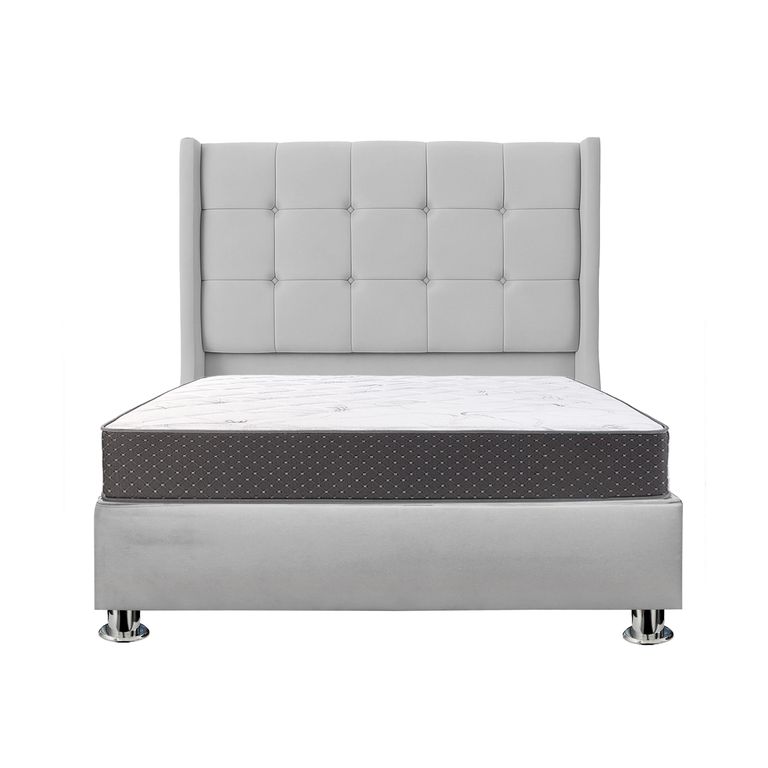 Combo Cama tapizada Atenas - Queen - Gris claro+Colchón Semiortopédico MUEBLES MACRUMOS/1,239