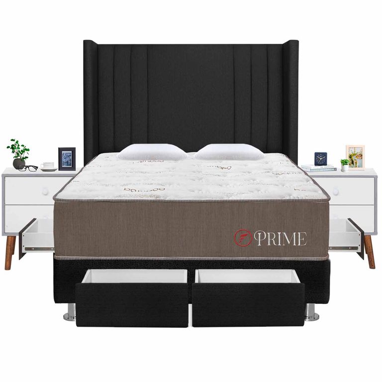 Cama tapizada Premium Praga Beige -King 2 piezas - Personaliza el color + puff gratis MUEBLES MACRUMOS/1,929
