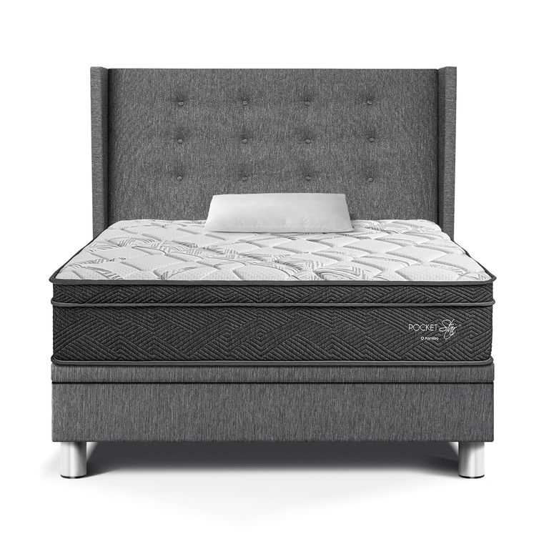 Dormitorio Boxet Gold Pocket Star 1.5plz Gris + Almohada + Protector PARAISOS/1,799