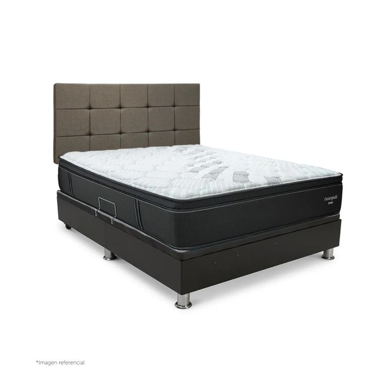 Combo Cama tapizada Varsovia 2PLZ+Colchon Majestic Paraíso+Almohada - Gris Oscuro MUEBLES MACRUMOS/849