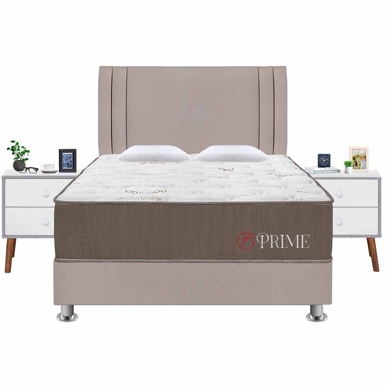 Cama tapizada Premium Kena Beige 1.5 Plz Personaliza el color + puff gratis MUEBLES MACRUMOS/1,329