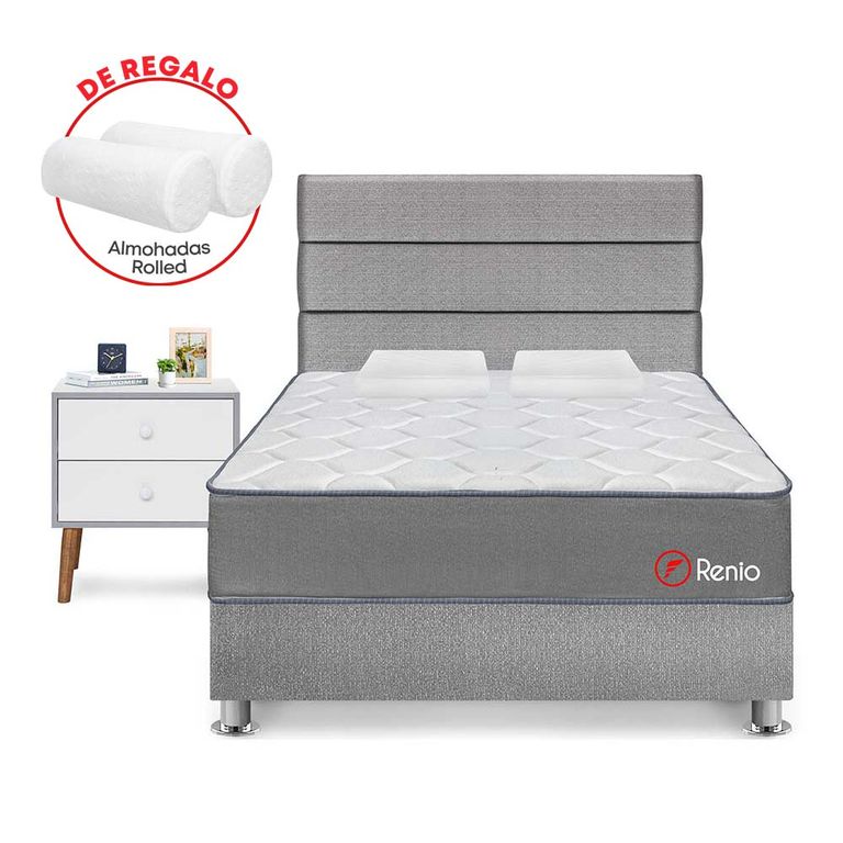 Dormitorio Royal Abrazzo Novo Queen Gris + 2 Almohadas Viscoelásticas PARAISOS/3,049