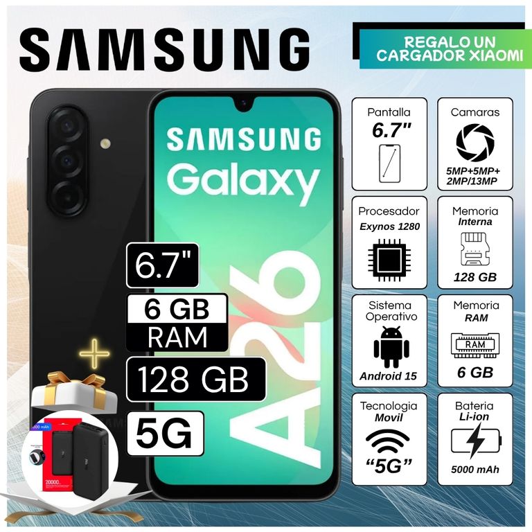 Celular Samsung Galaxy A26 5G 6.7'' Pulg. 6GB RAM 128GB Android 15 - Blue Black SAMSUNGS/979